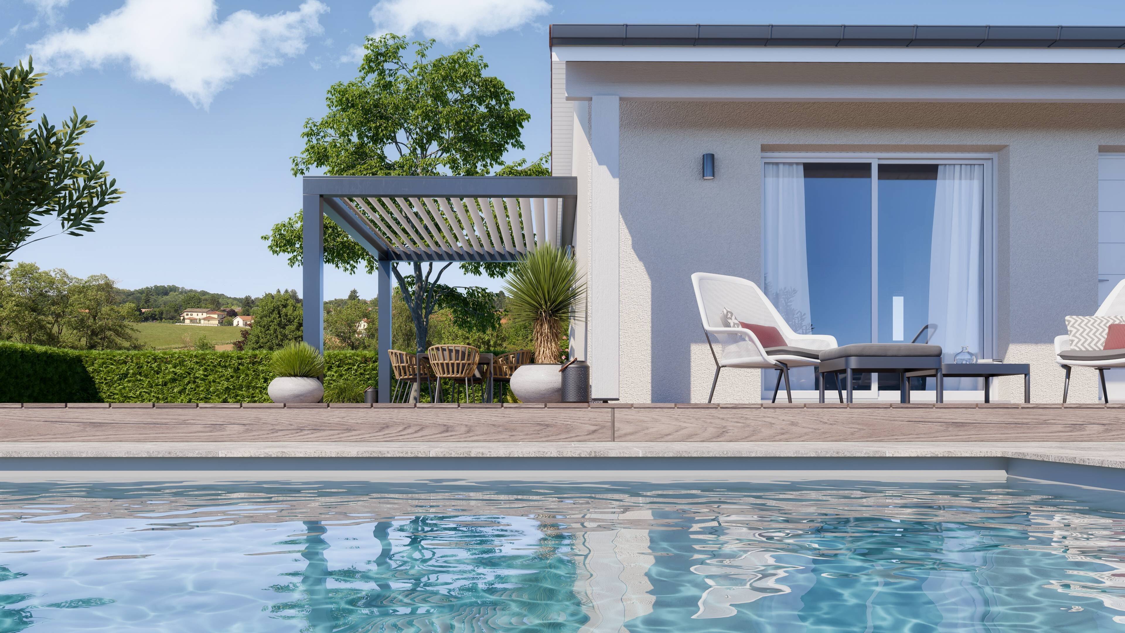 Notre modèle Fleur de Bohème est une maison de plain-pied à partir de 80 m² habitables - 3 chambres et un garage.