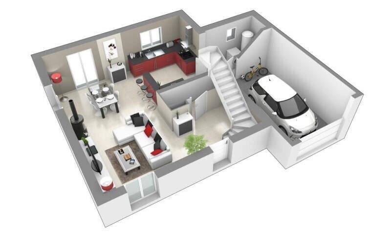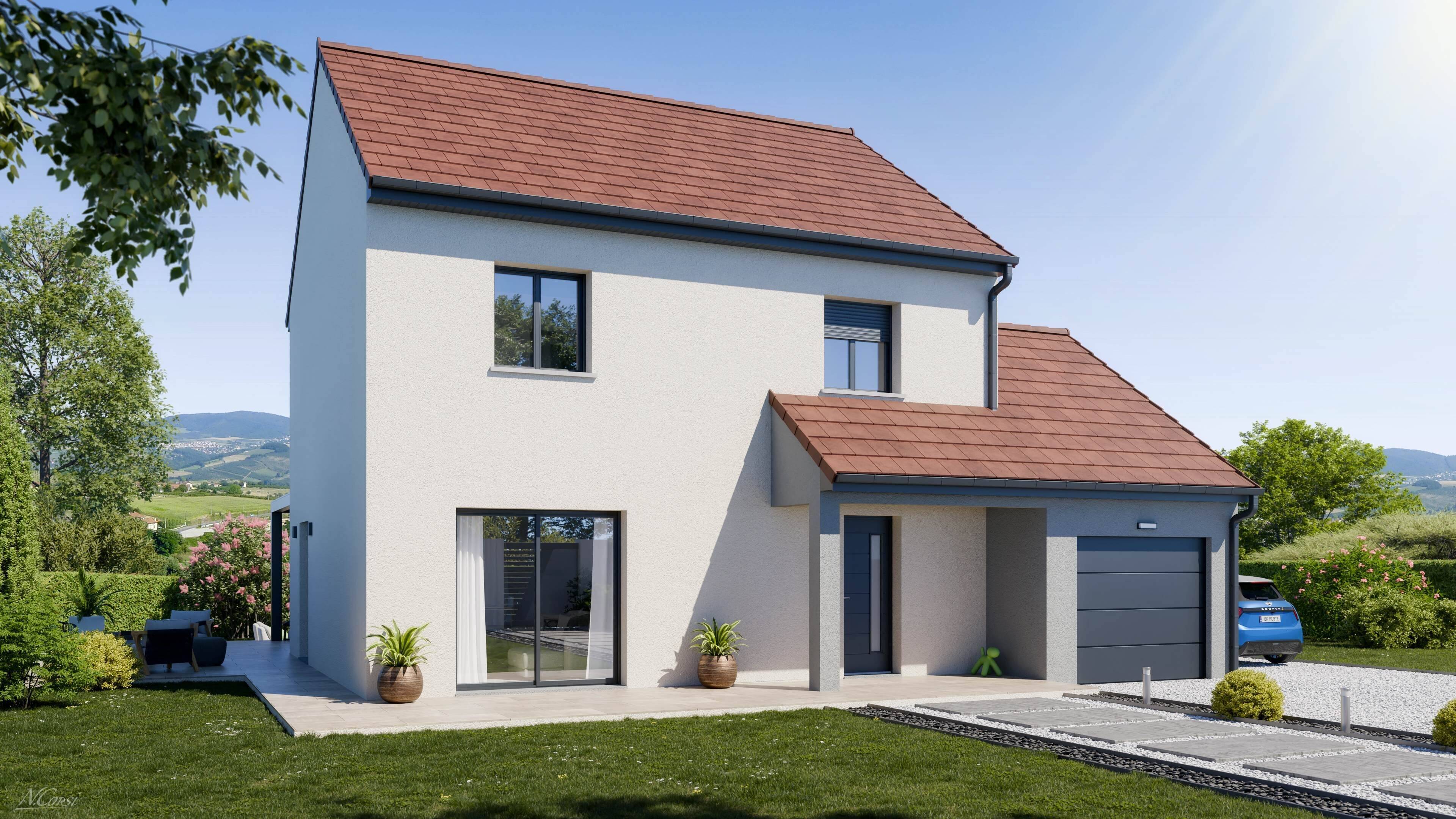 Notre modèle Alixia 2 est une maison à étage à partir de 70 m² habitables- 3 chambres et un garage.