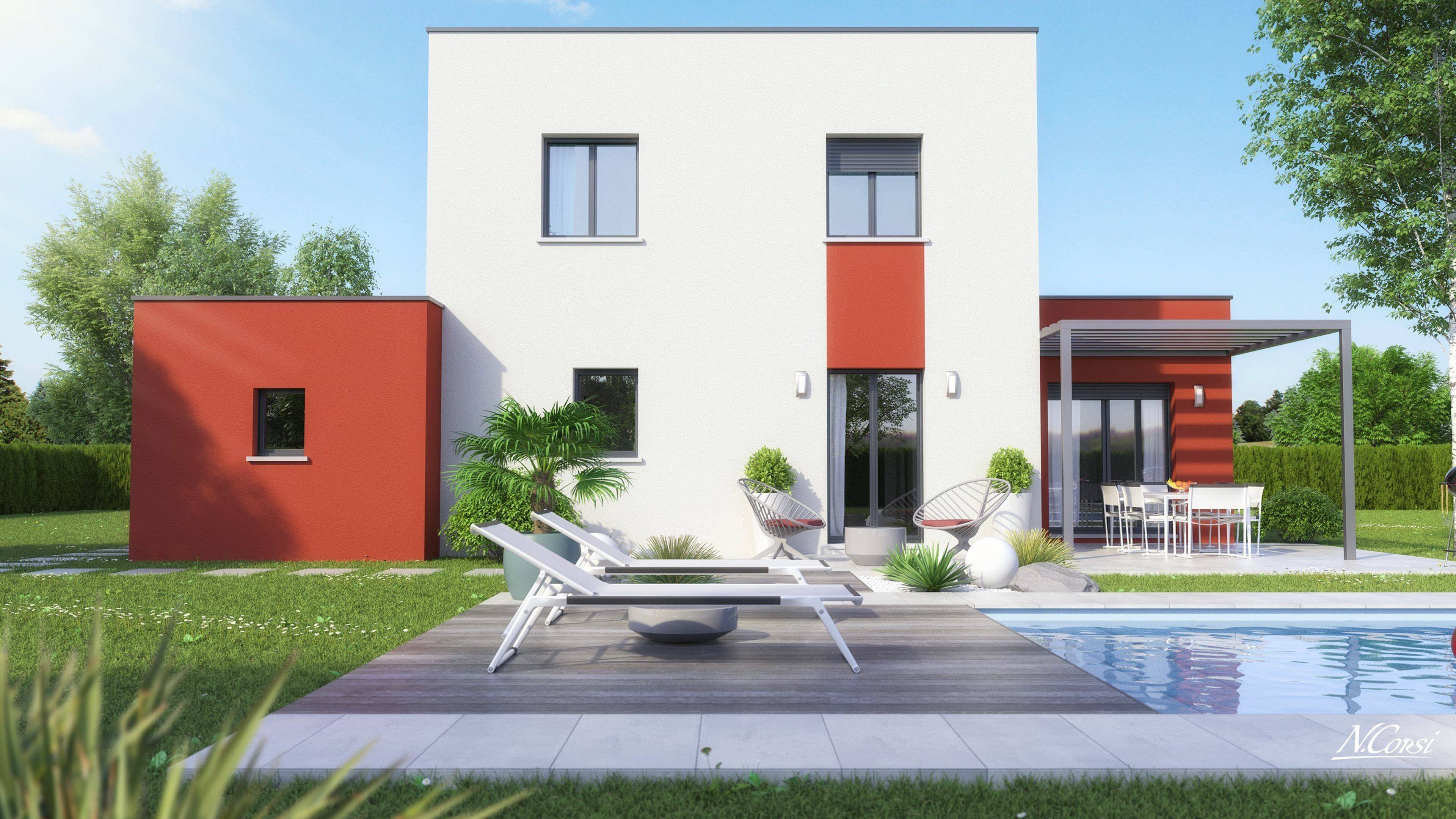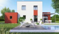 Notre modèle Emma est une maison à étage 3 volumes, avec toit plat,
