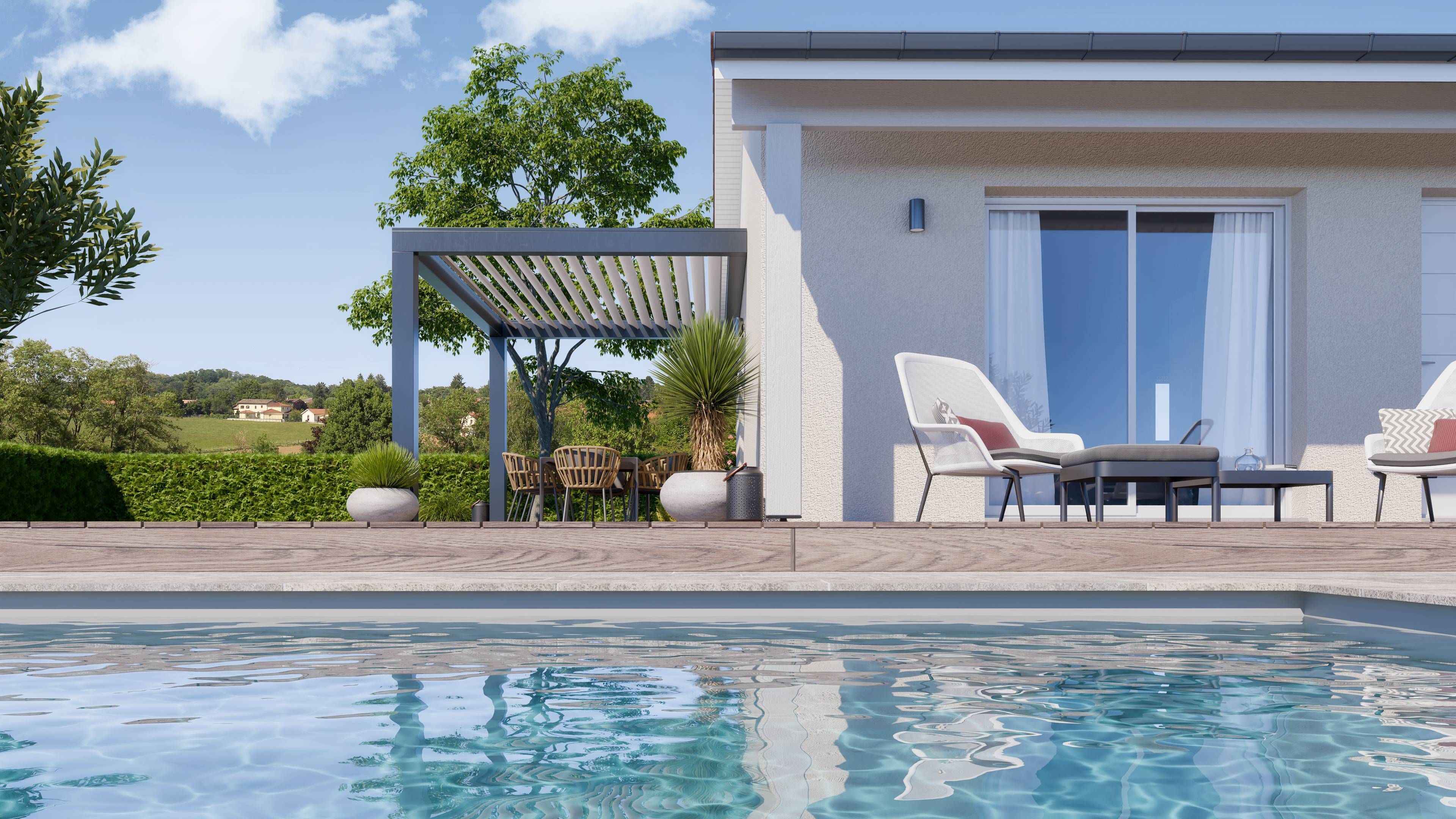 - Conforme à la réglementation RE 2020 pour une maison économe et respectueuse de l’environnement