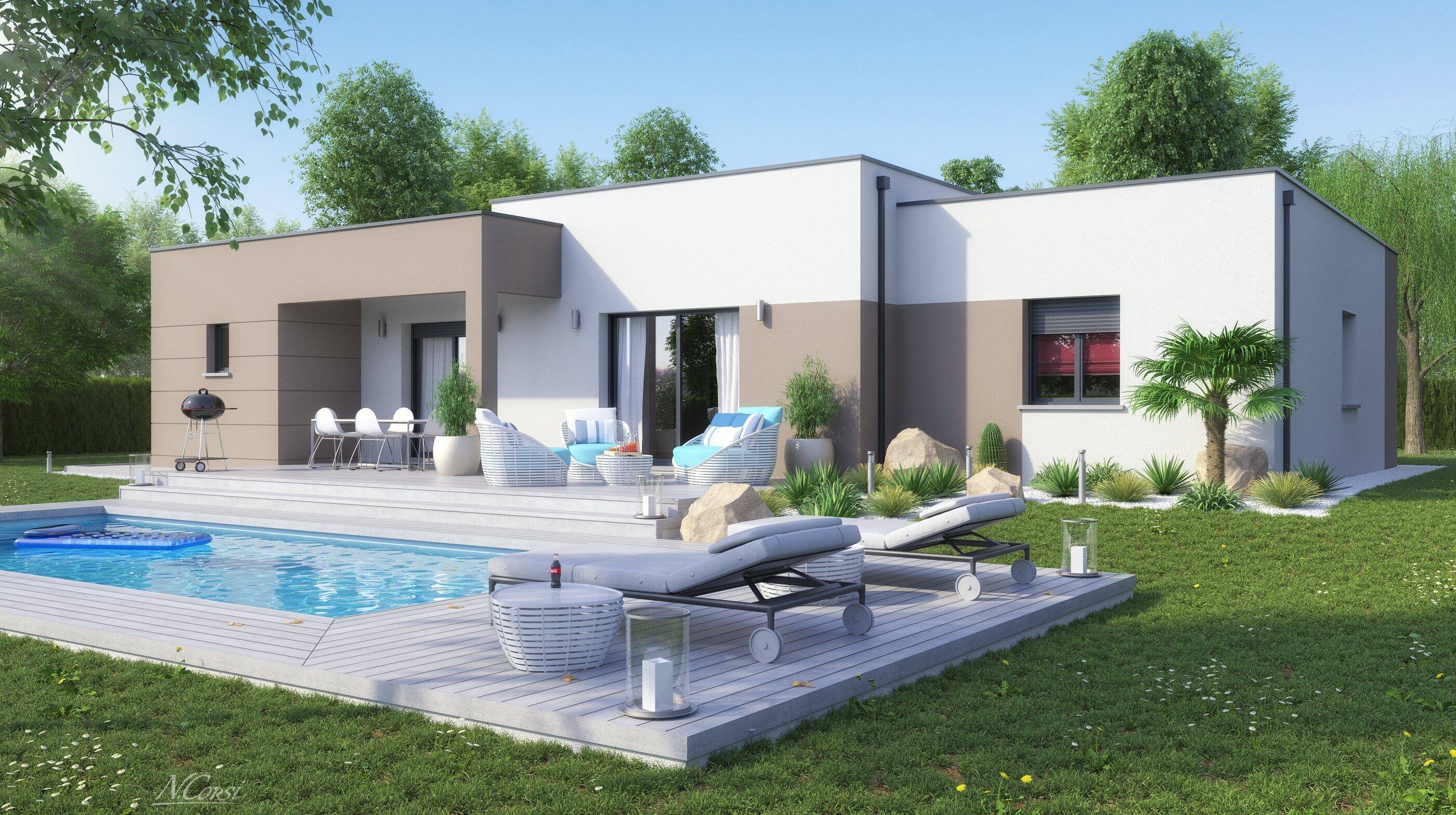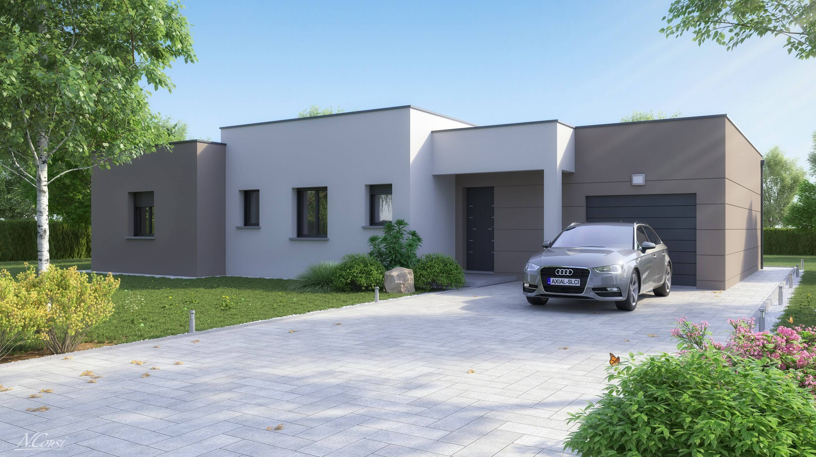 Notre inspiration Julia est une maison de plain-pied, avec toit plat, à partir de 90 m² habitables - 3 chambres et un garage.