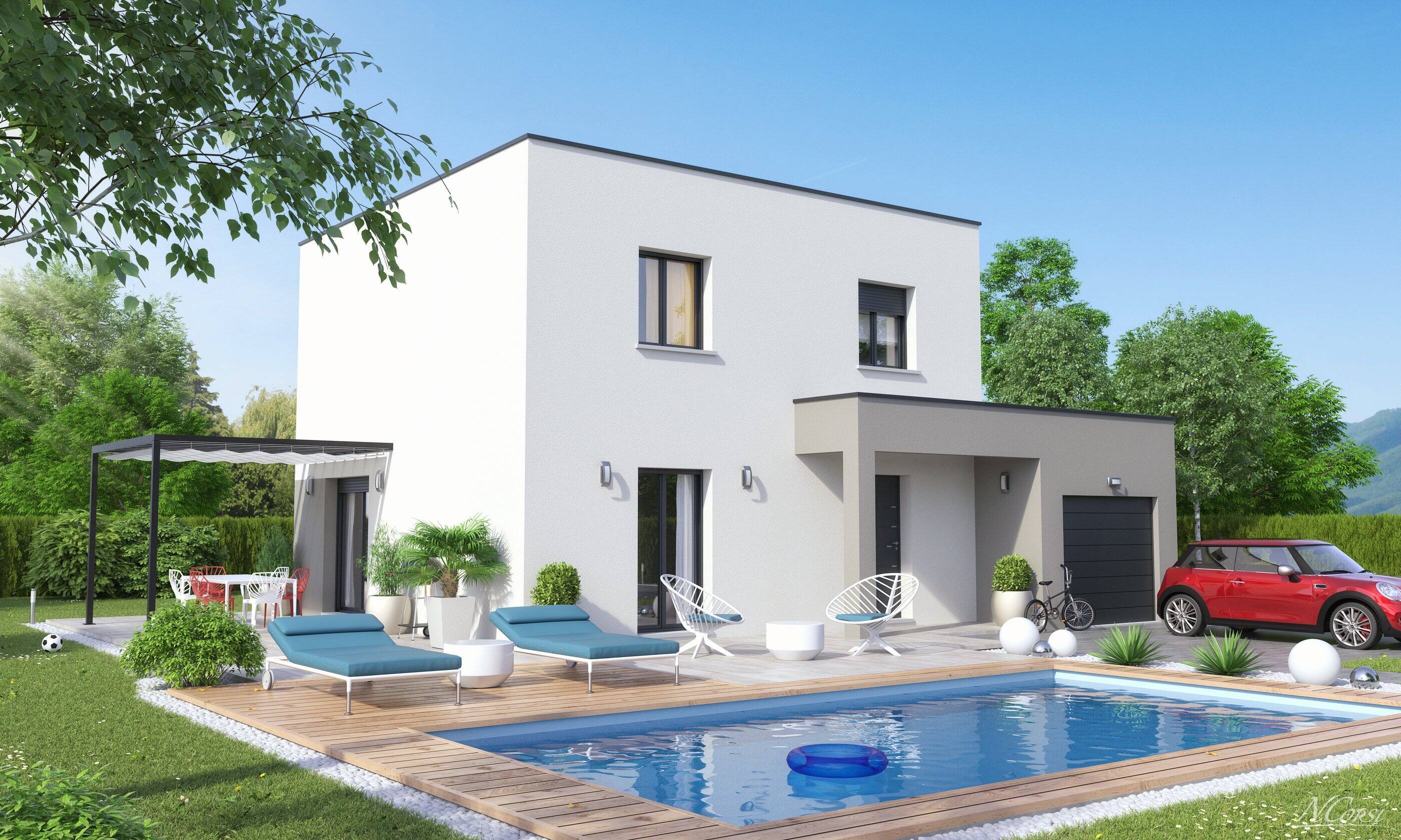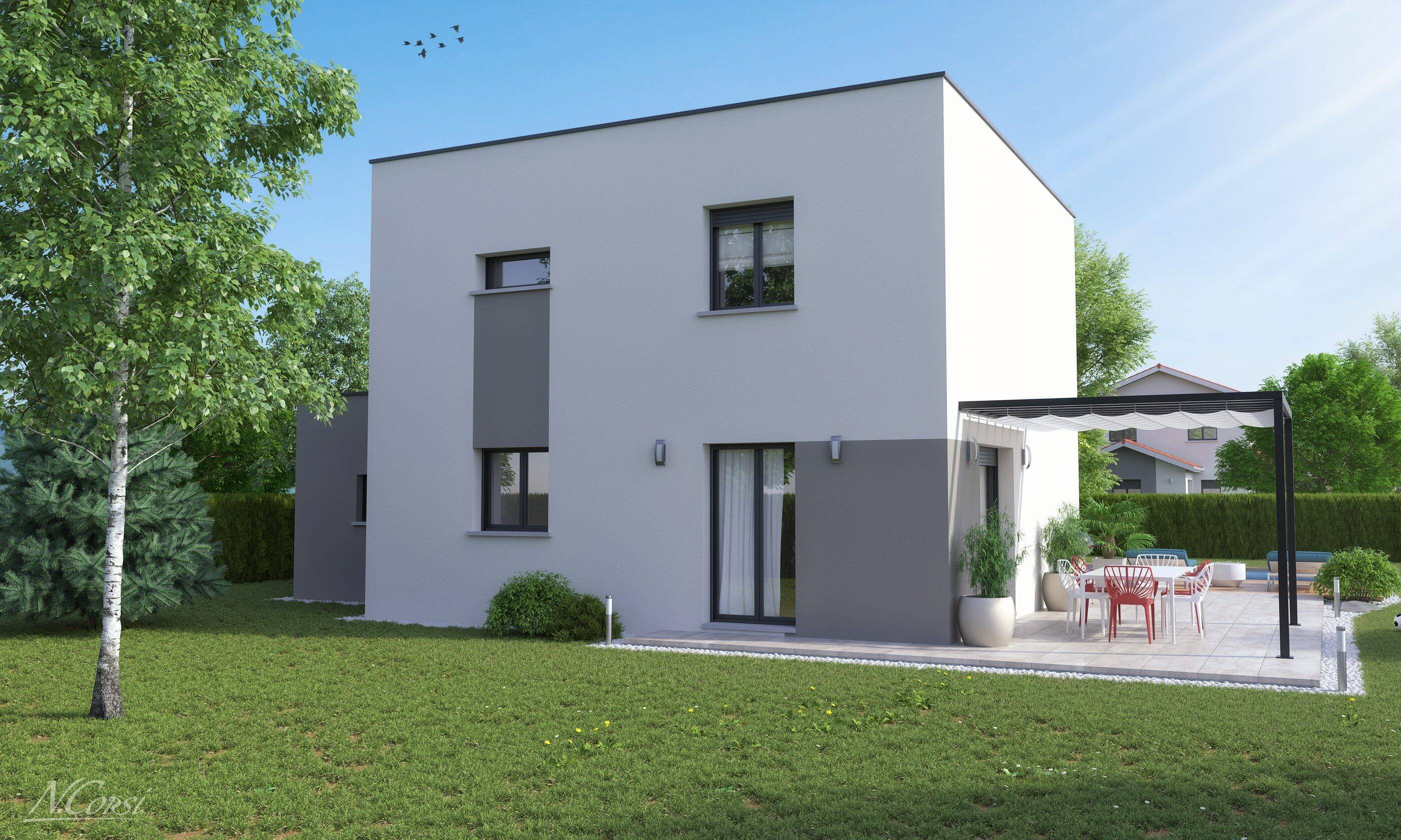 Notre modèle Leana est une maison à étage 2 volumes, avec toit plat,